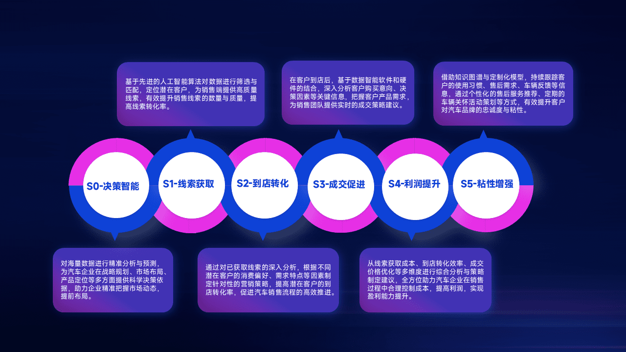 通过拓宽潜在客户来源、、优化线索分配并提高到店转化率,,,以增强销售效率。。同时,,,,利用线索数据不断优化分析模型,,,,有效提升转化率,,,,扩大营销影响力。。